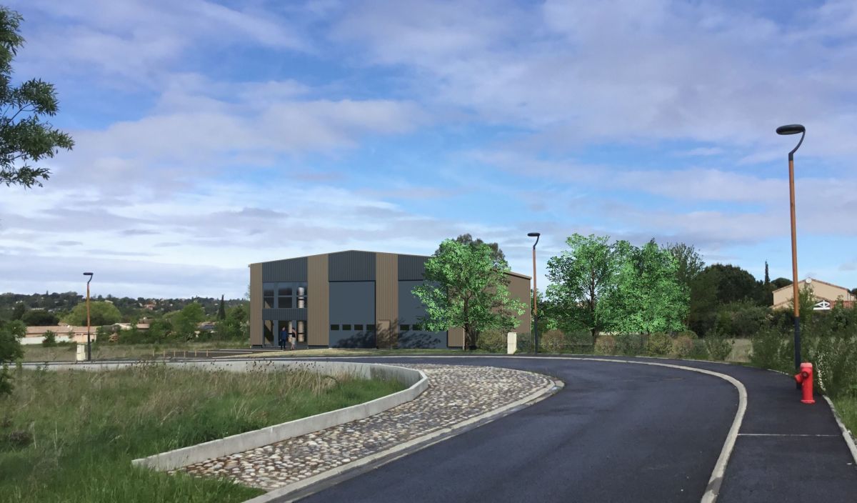 Le bâtiment s’inscrit ainsi dans une esthétique à la fois moderne, fonctionnelle et sobre, parfaitement adaptée à une activité artisanale, logistique ou industrielle.